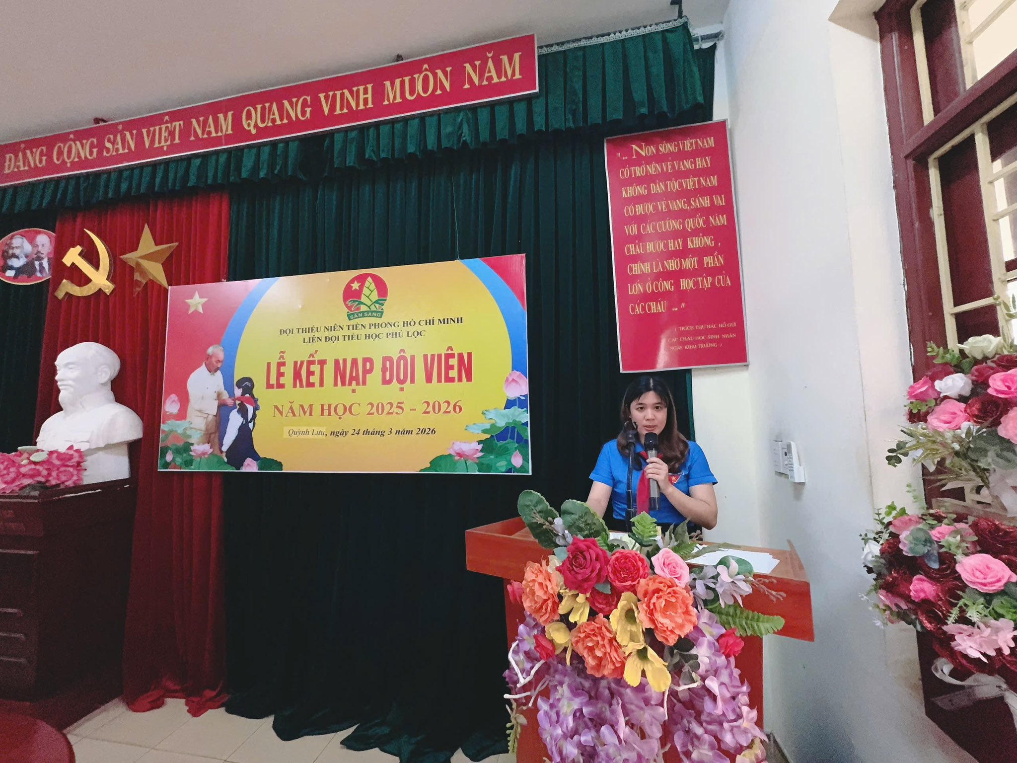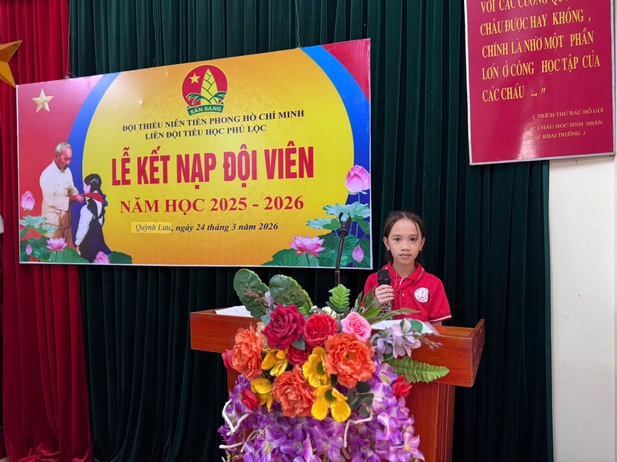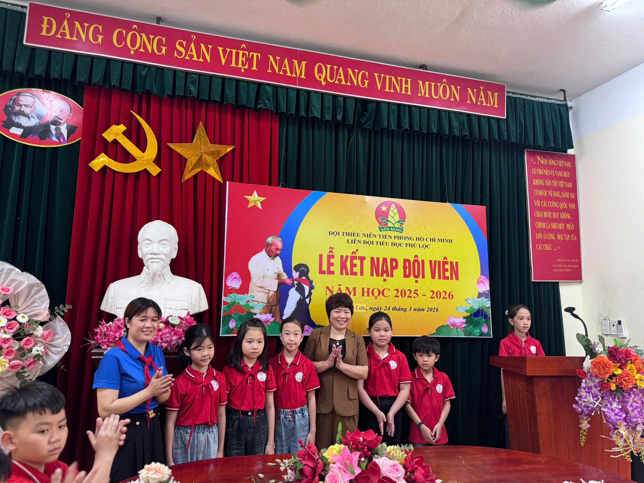 Thực hiện chương trình công tác Đội và phong trào thiếu nhi năm học 2025 – 2026, chiều ngày 24/3/2026 Liên đội Trường Tiểu học Phú Lộc đã long trọng tổ chức Lễ kết nạp Đội viên mới cho các em nhi đồng khối 3 – những bông hoa chăm ngoan, tích cực trong học tập và rèn luyện.