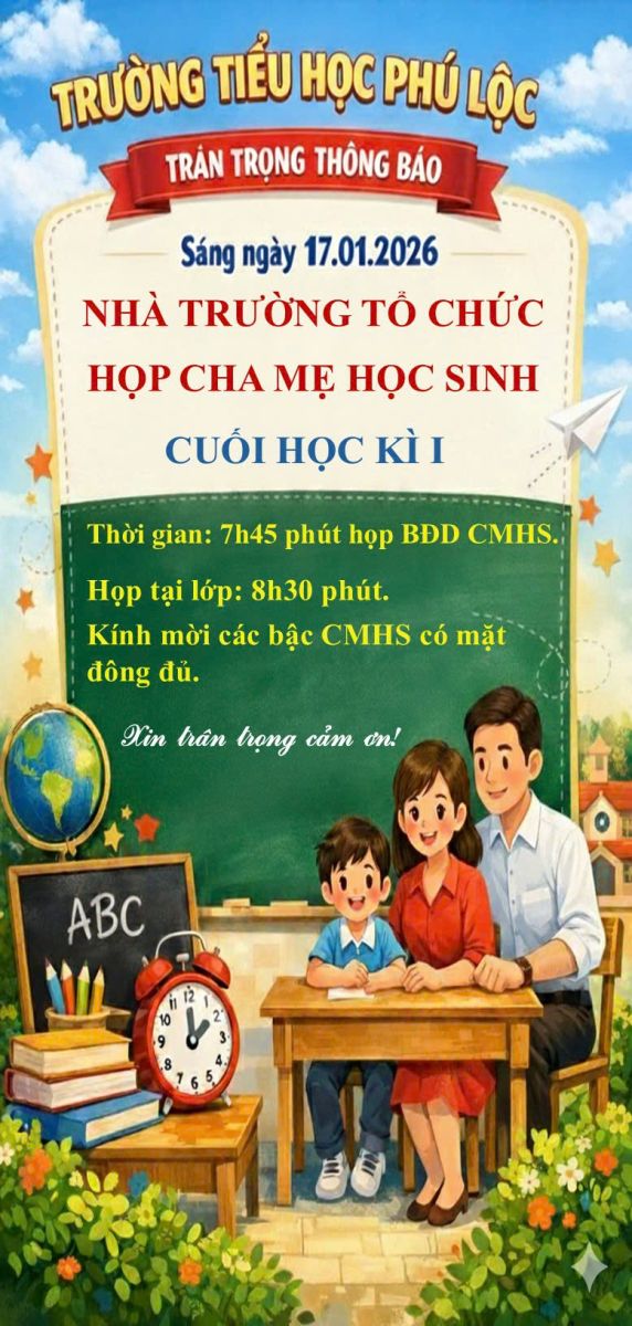 THÔNG BÁO HỌP PHỤ HUYNH CUỐI HỌC KÌ I NĂM HỌC 2025 – 2026 TRƯỜNG TH PHÚ LỘC
