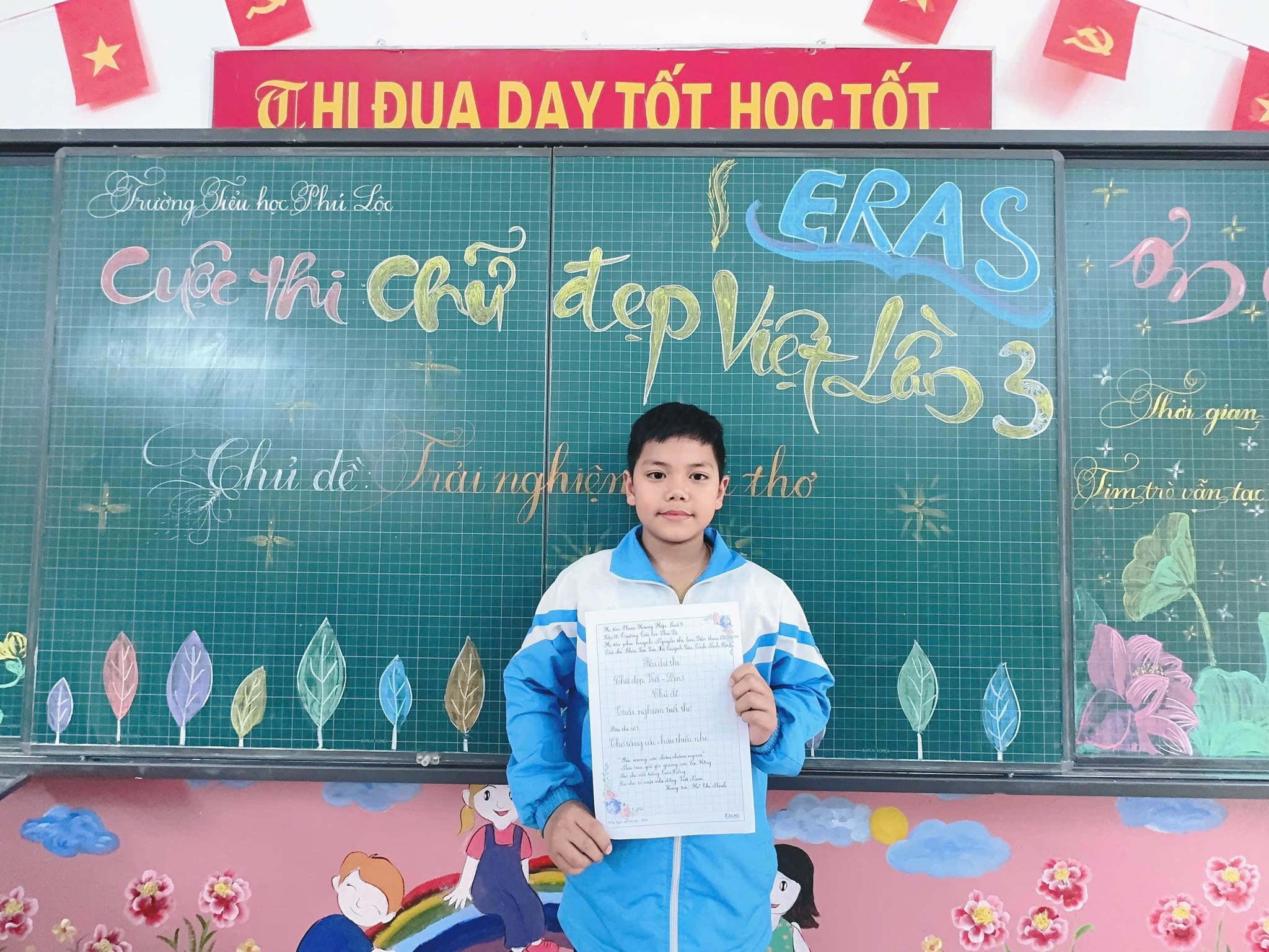 Nhằm gìn giữ và phát huy vẻ đẹp của chữ viết tiếng Việt, Trường Tiểu học Phú Lộc đã tích cực tham gia Cuộc thi “Chữ đẹp Việt” lần thứ 3 do ERAS tổ chức. Bên cạnh đó, nhà trường còn tổ chức phong trào viết chữ đẹp trong toàn thể cán bộ, giáo viên, nhân viên và học sinh, tạo cơ hội cho mọi người rèn luyện nét chữ, nâng cao tính cẩn thận, kiên trì và phát triển thẩm mỹ trong từng nét chữ. Học sinh toàn trường hưởng ứng nhiệt tình, tích cực tham gia các hoạt động viết chữ đẹp. Trong các lớp, giáo viên chủ nhiệm trực tiếp hướng dẫn, rèn luyện chữ viết cho các em, dưới sự chỉ đạo và quan tâm theo dõi của Ban giám hiệu nhà trường. Những học sinh có năng khiếu được bồi dưỡng để tham gia Cuộc thi “Chữ đẹp Việt” và chuẩn bị tham gia cuộc thi viết chữ đẹp cấp cụm, cấp tỉnh do Sở Giáo dục và Đào tạo Ninh Bình tổ chức.Phong trào viết chữ đẹp đã góp phần hình thành thói quen giữ vở sạch, viết chữ rõ ràng, đẹp, đồng thời tạo không khí học tập tích cực, khuyến khích tinh thần thi đua giữa các lớp và toàn trường. Những nét chữ ngay ngắn, tròn trịa của các em và sự nghiêm túc tham gia của cán bộ, giáo viên, nhân viên chính là niềm tự hào của nhà trường đã giữ gìn giá trị truyền thống của chữ viết tiếng Việt.