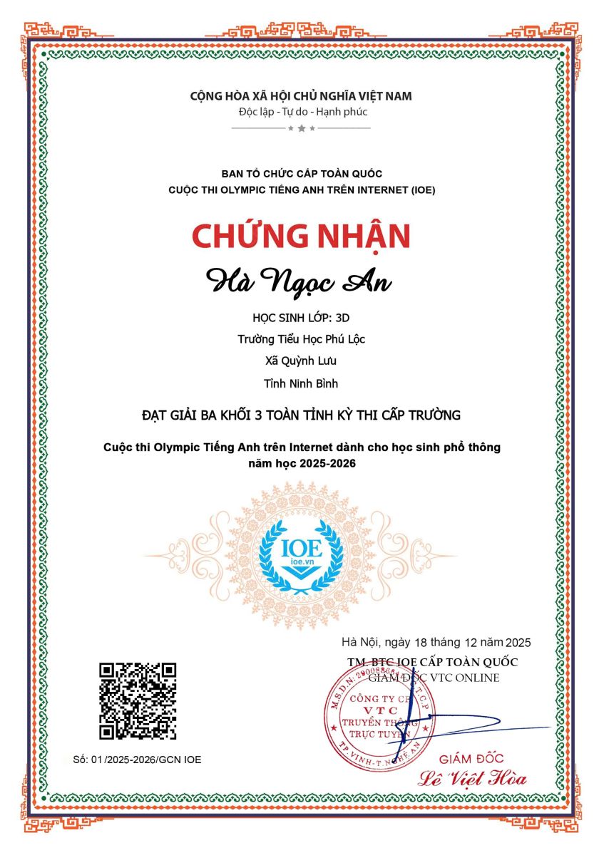 🎉Xin chúc mừng các em học sinh đã xuất sắc đạt thành tích cao trong kỳ thi Olympic Tiếng Anh trên Internet (IOE) cấp trường năm học 2025-2026! 🌟